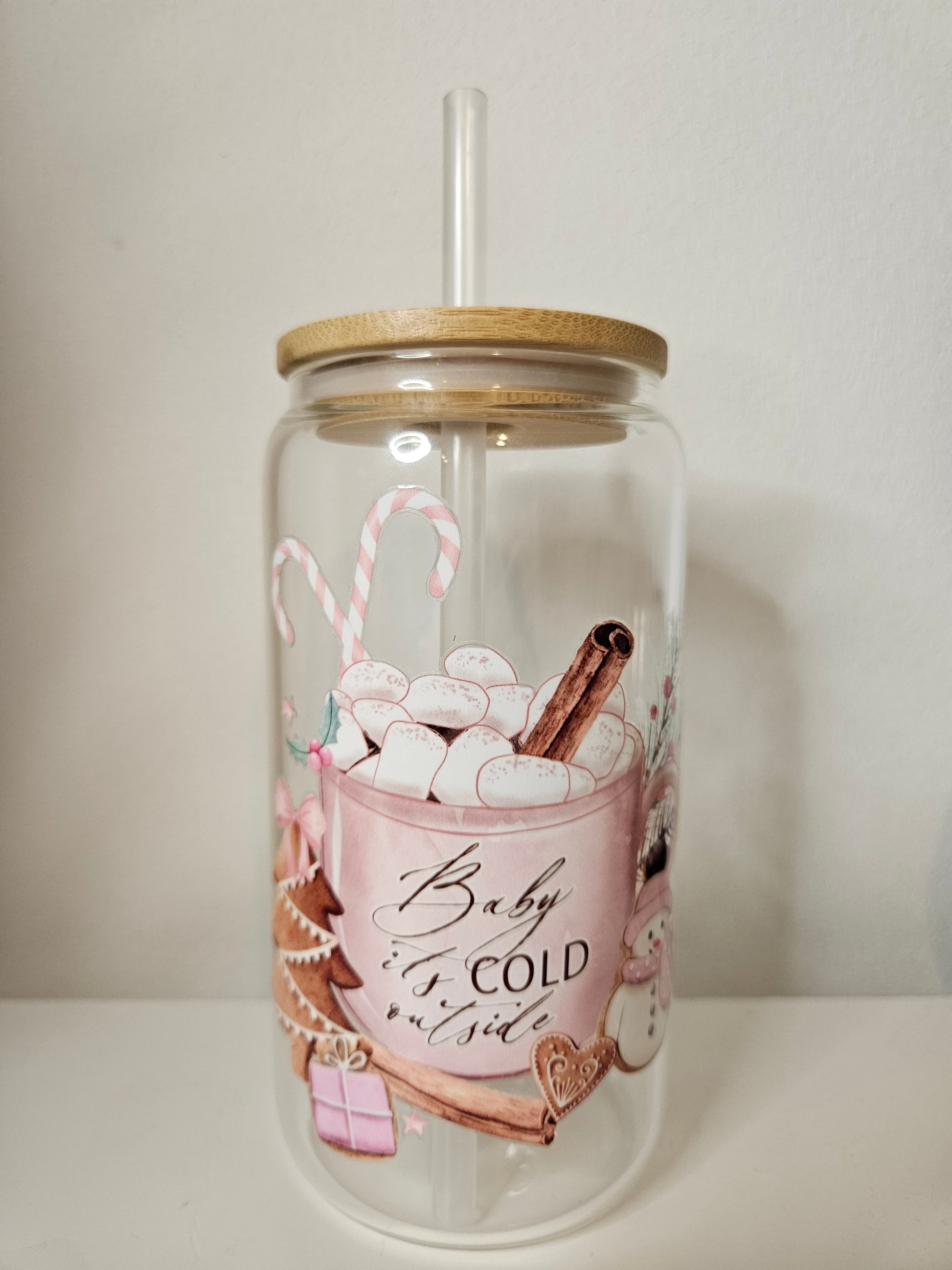 Baby it's cold outside Trinkglas mit Bambusdeckel