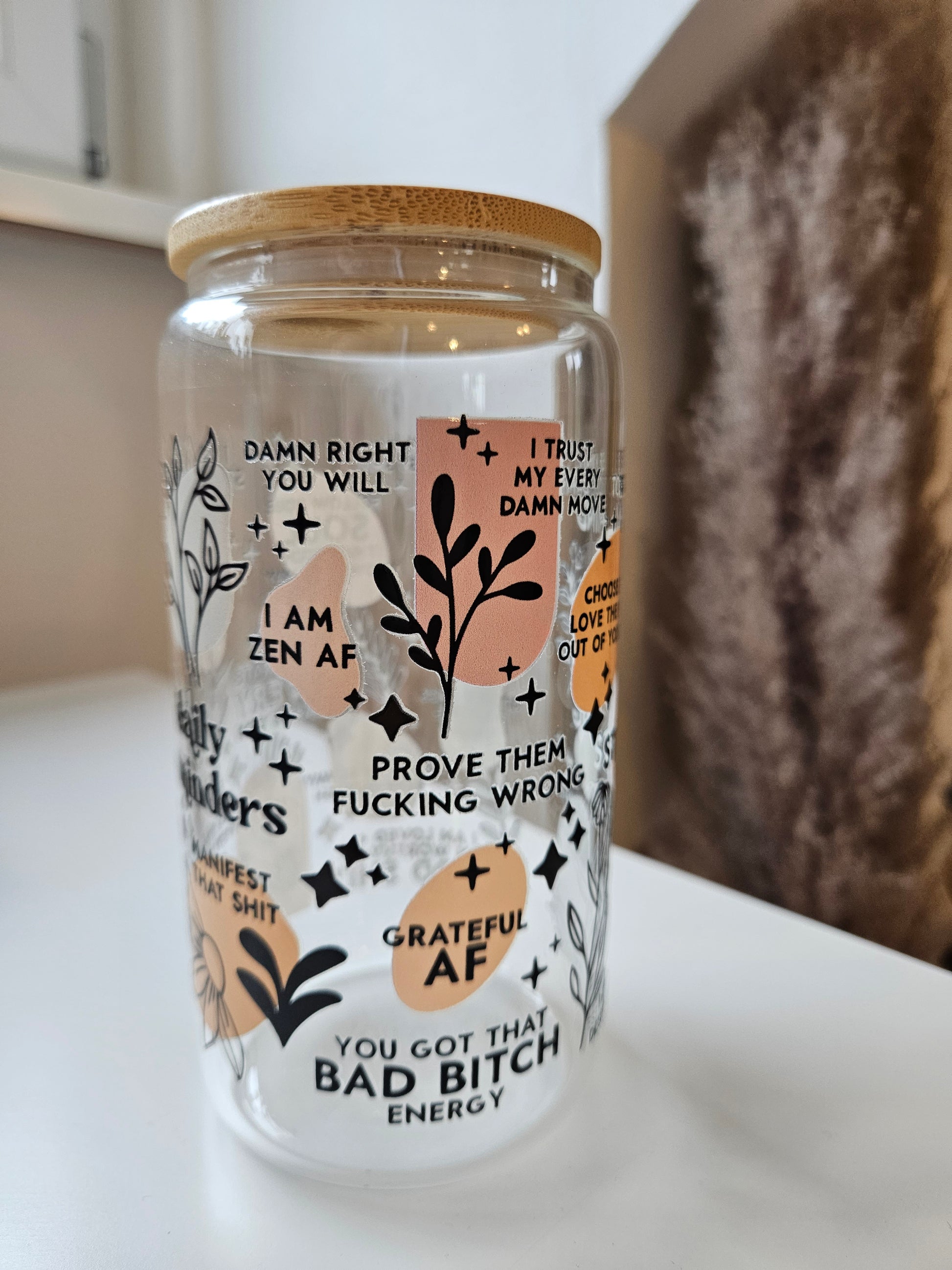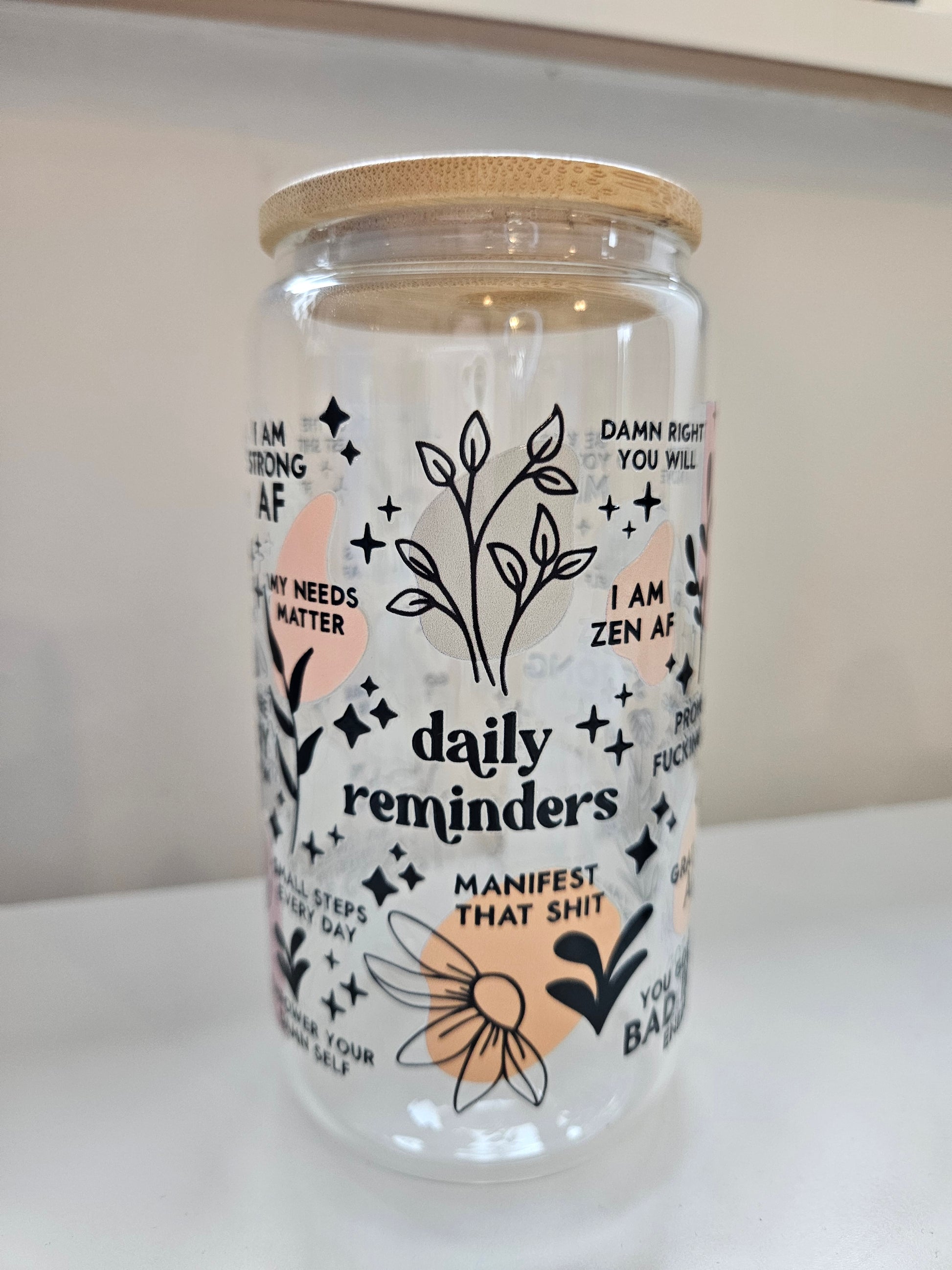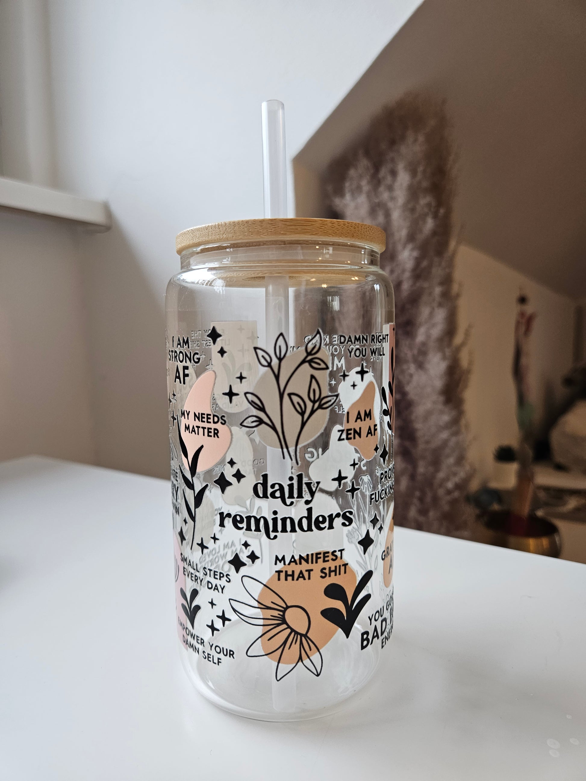 Daily reminder Glas Tumblr 16oz mit Bambusdeckel.