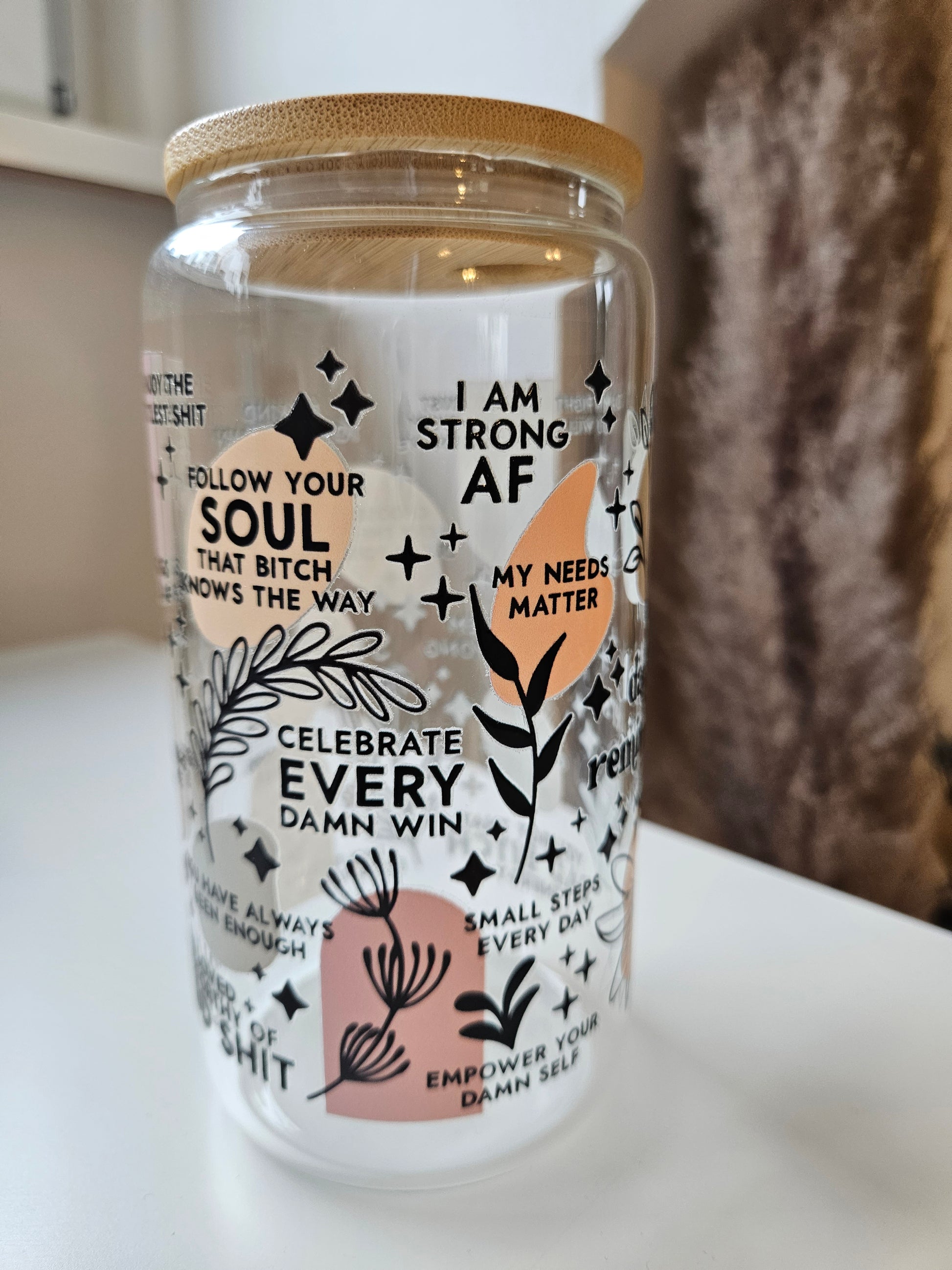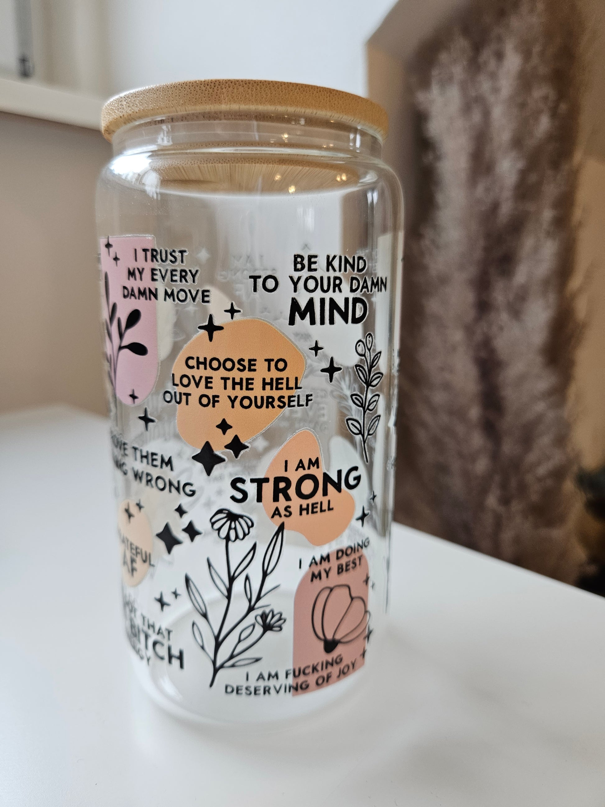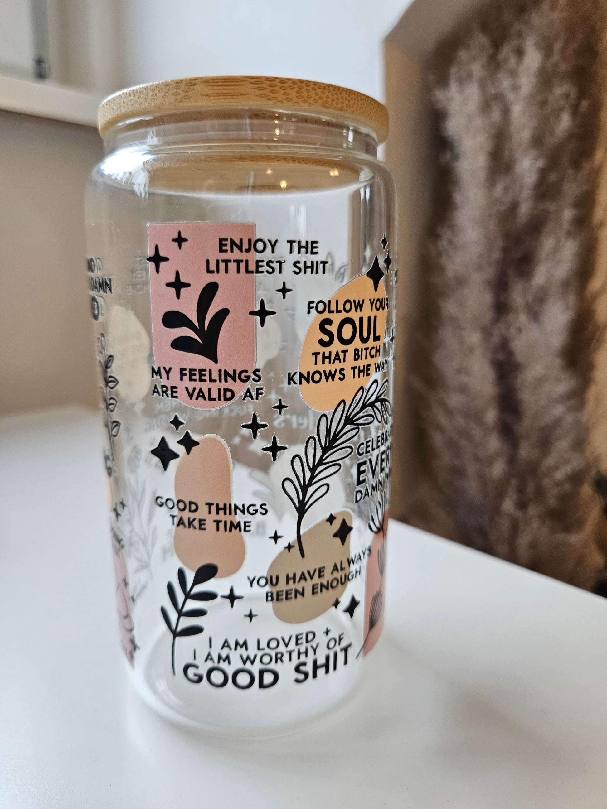 Daily reminder Glas Tumblr 16oz mit Bambusdeckel.