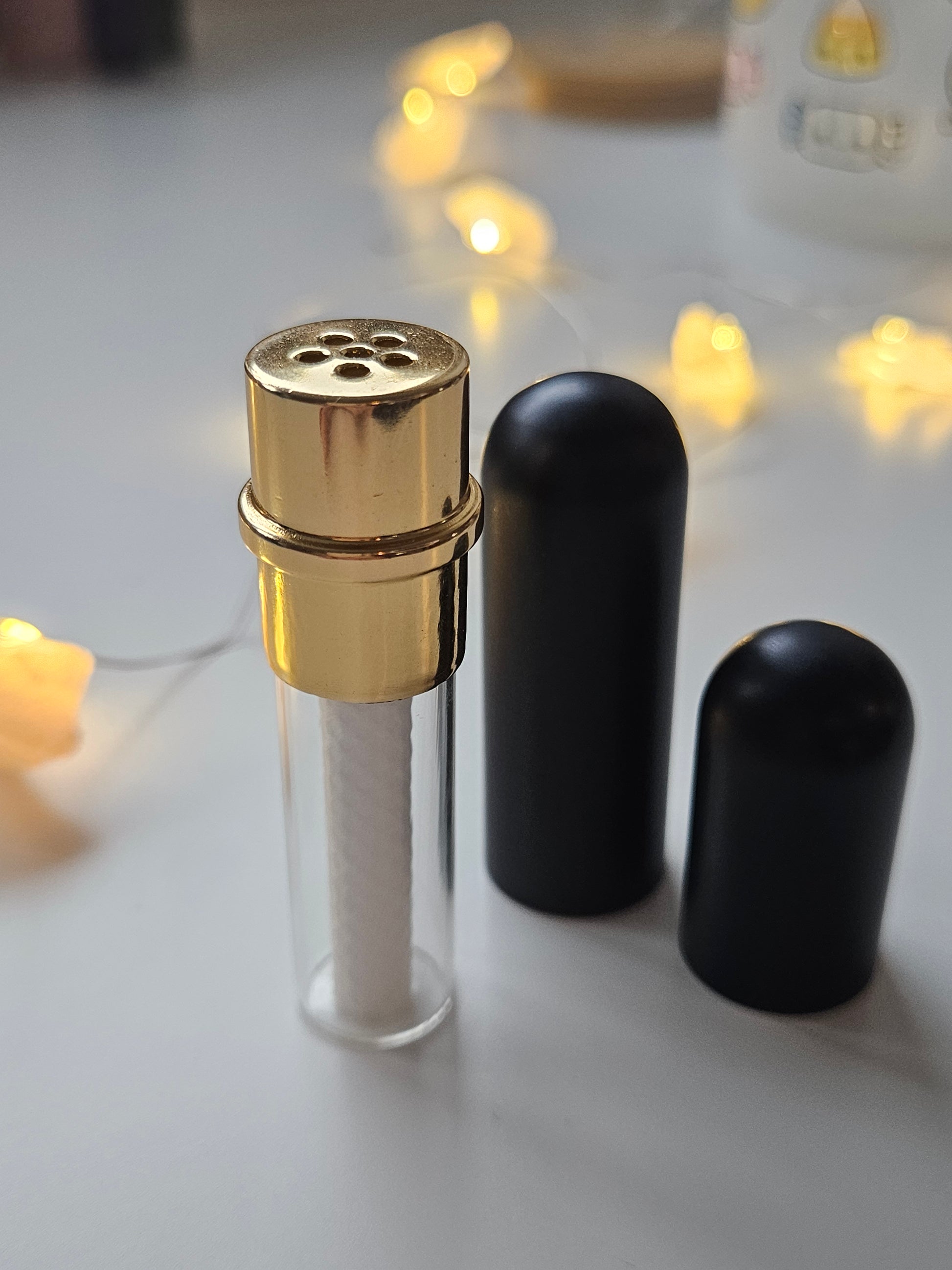 Erfülle deine Sinne mit dem Inhalator Stick. Fülle den Baumwolle Stift mit deinem bevorzugten Öl und atme tief ein, um von den Aromatherapie Vorteilen zu profitieren. Der Stick ist nachfüllbar und enthält einen Docht(im Lieferumfang sind zwei enthalten), der das Öl gleichmäßig verteilt. Eine einfache und natürliche Art, deinen Geist und Körper zu entspannen. Perfekt für unterwegs um dir einen achtsamen Moment zu nehmen, dich kurz auf deinen gewählten Wohlfühl Duft zu konzentrieren.