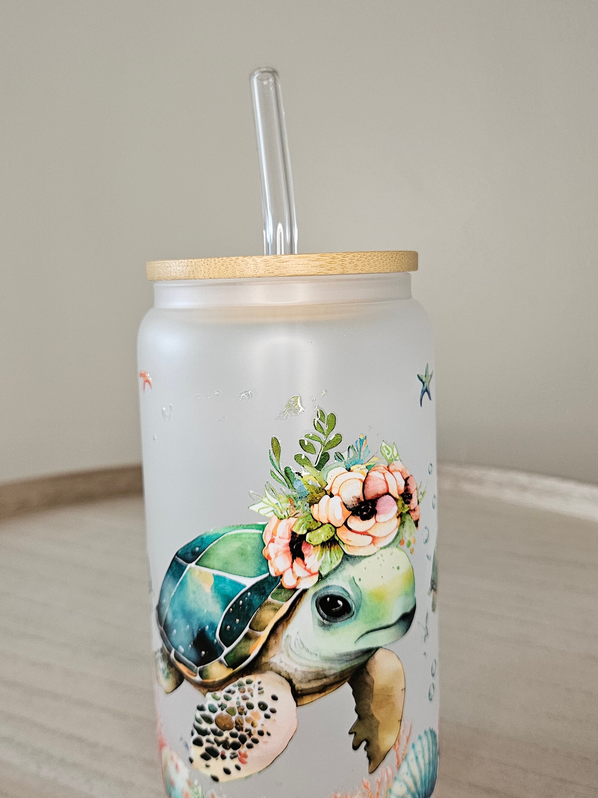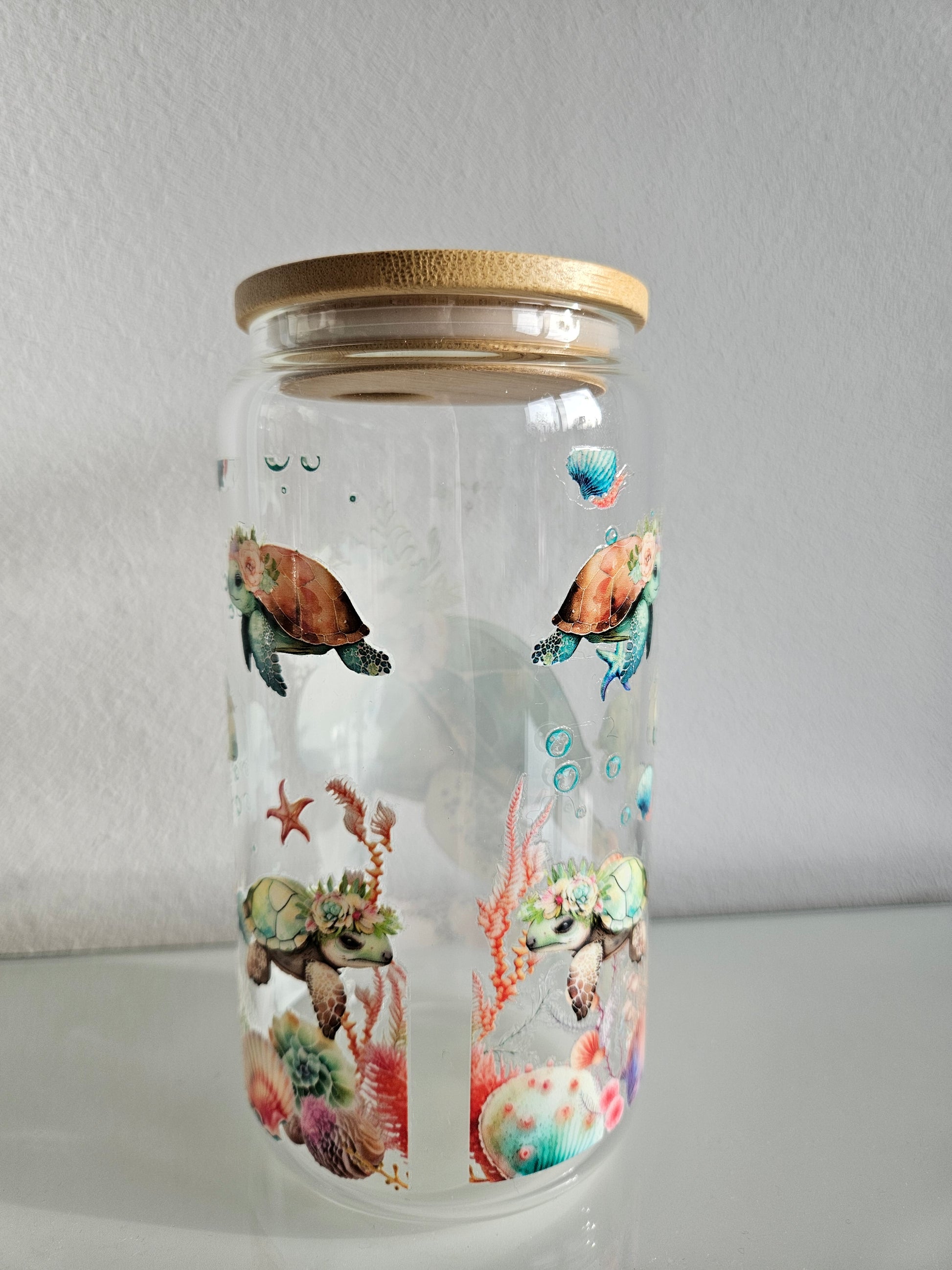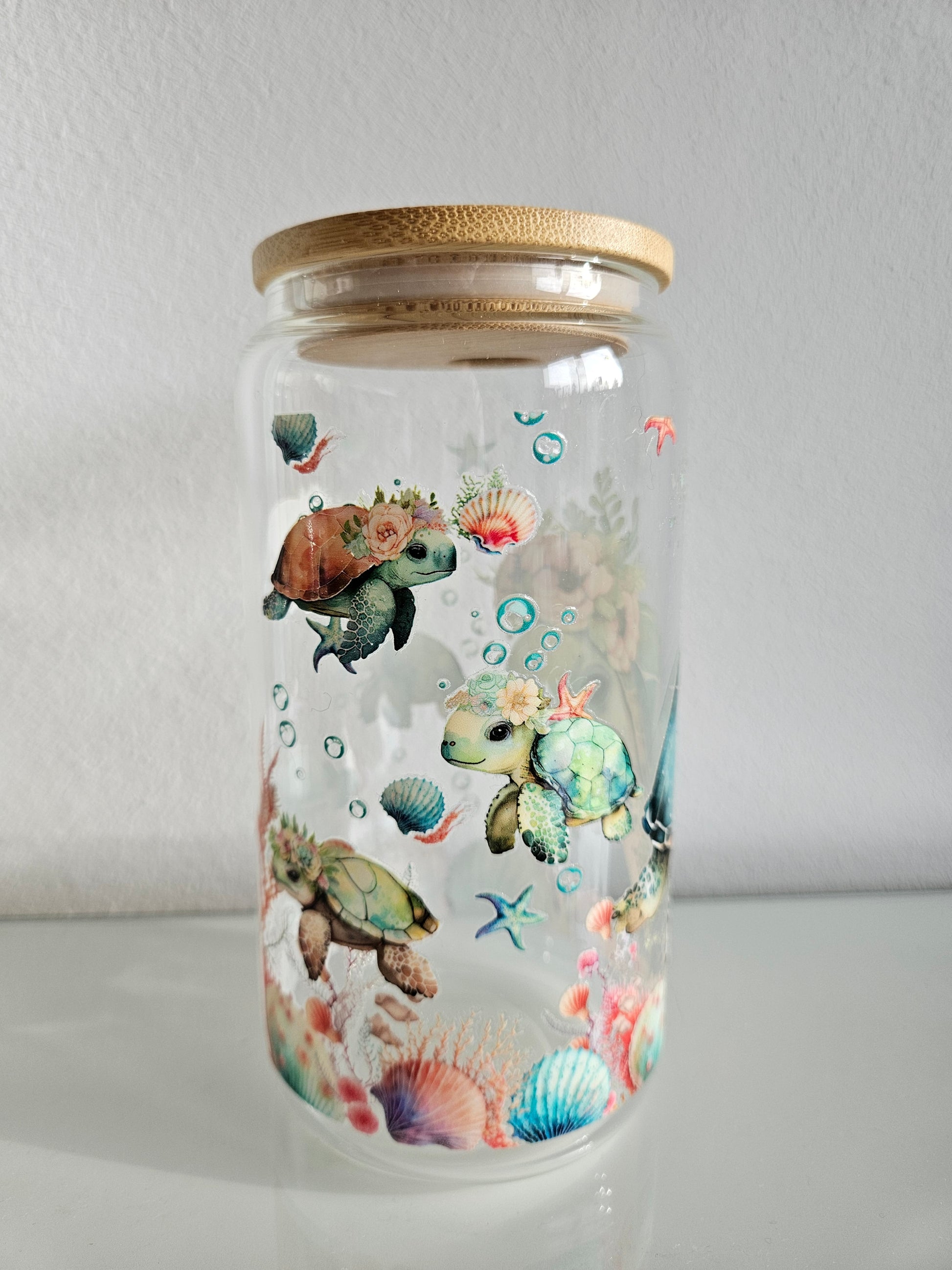 Süßes Schildkröten Trinkglas mit Bambusdeckel (ca.450ml)