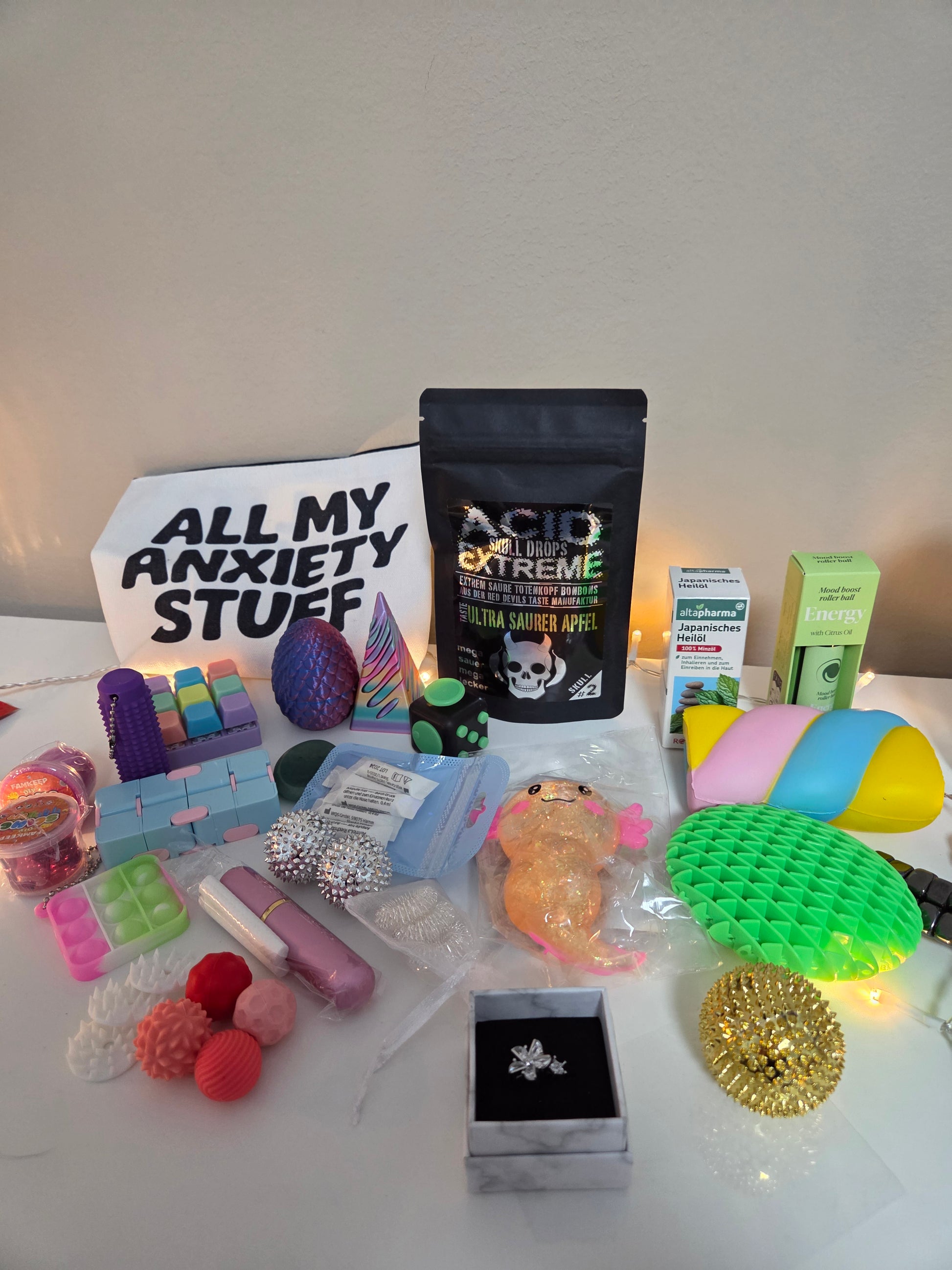 Sternenblume Fidgetring, eine Tasche für Skills,Squishys, Edelstein Handschmeichler, Akupressur Bälle, saure Bonbons und vieles mehr!