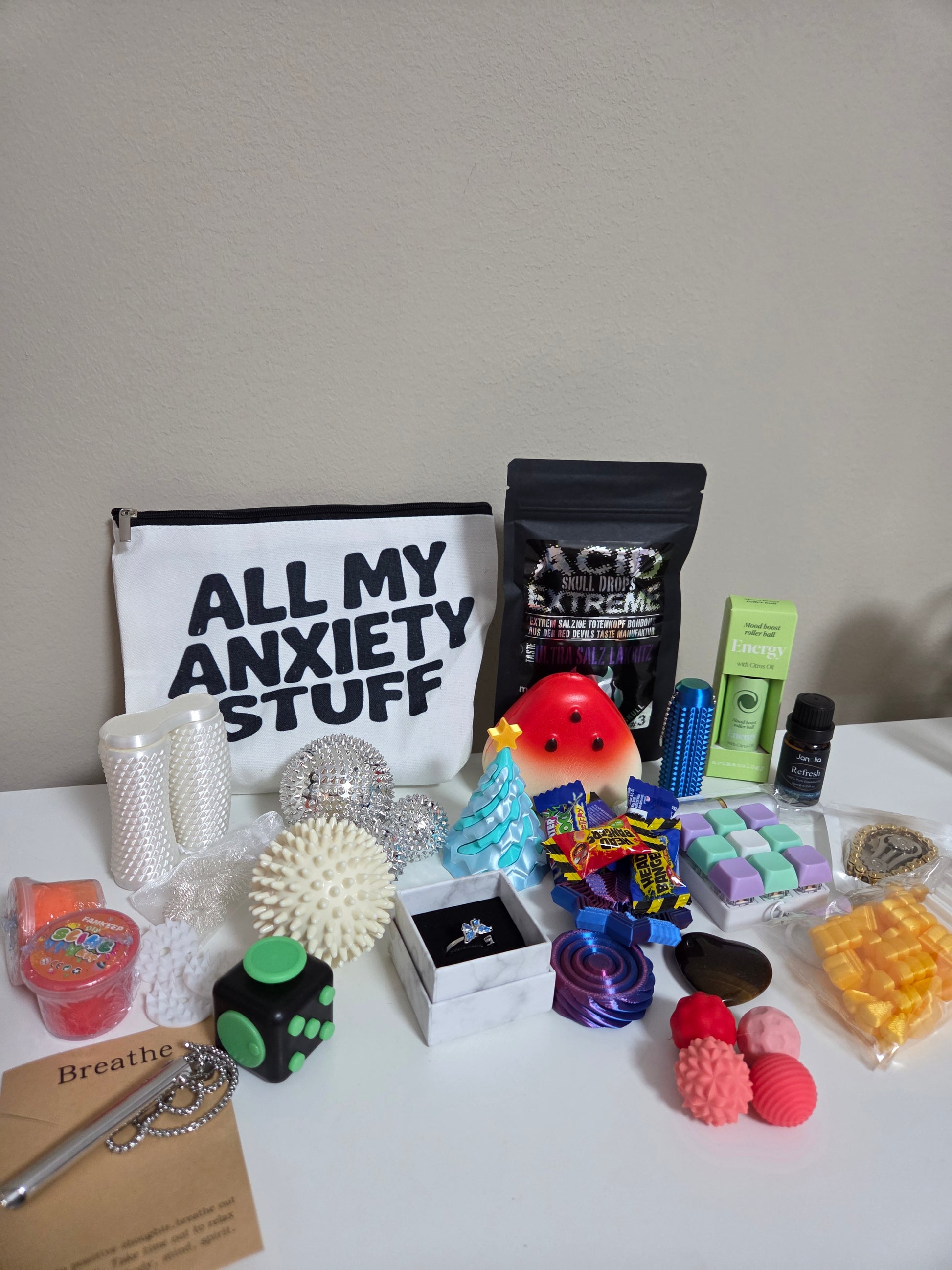 Schmetterling Fidgetring, eine Tasche für Skills,Squishys, Edelstein Handschmeichler, Akupressur Bälle, saure Bonbons und vieles mehr!
