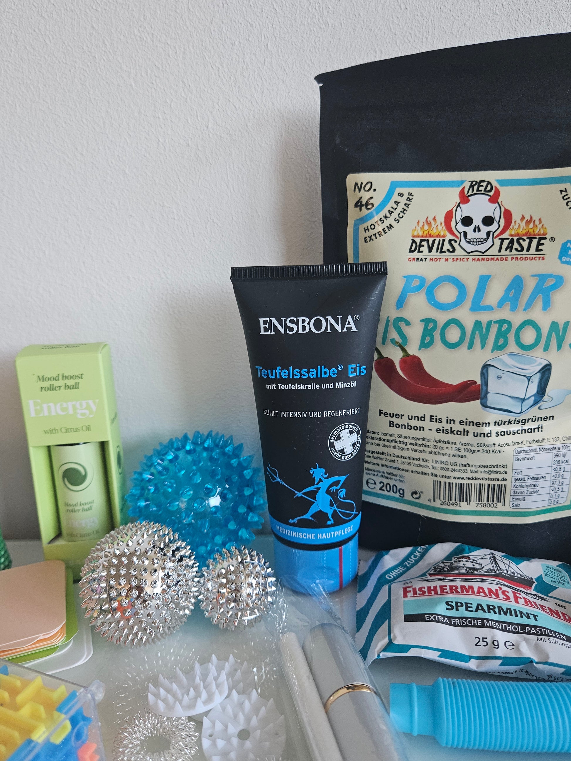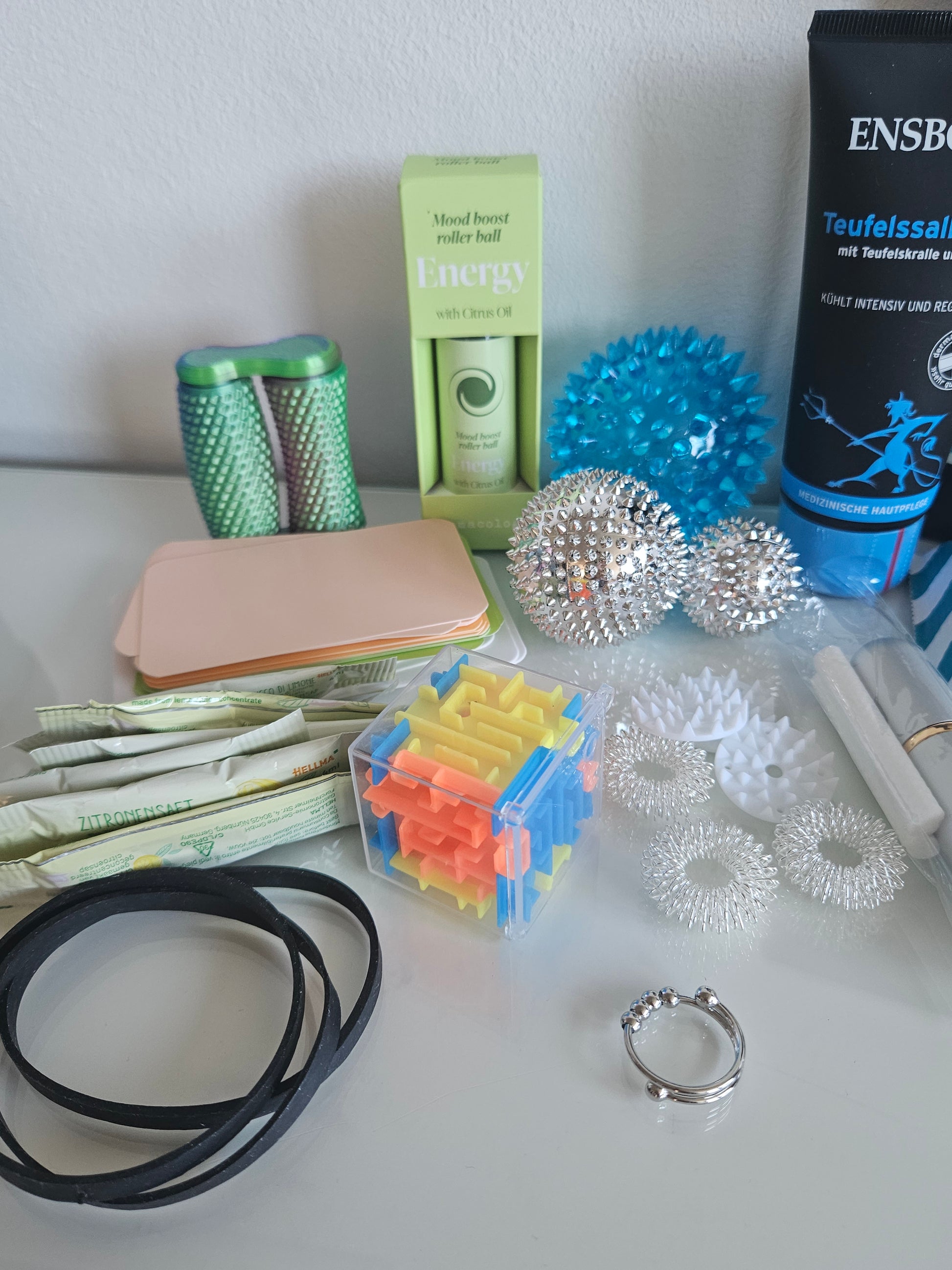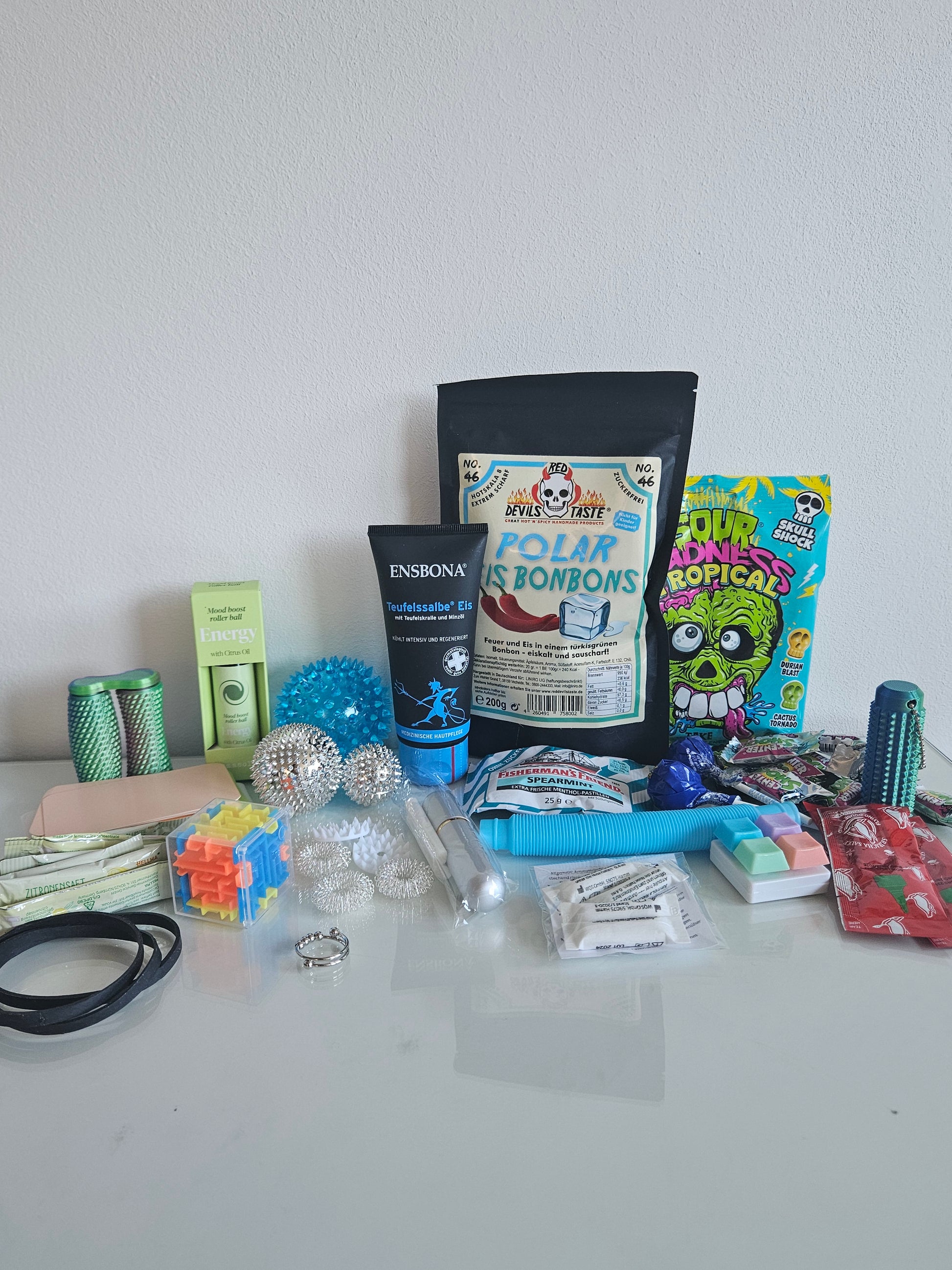 Diese Skillskiste bietet eine große Mischung aus verschiedenen Skills, für alle Anspannungsbereiche. Von beruhigenden Fidgets bis starken Akupressur Reizen, enthält sie alles was du brauchst.